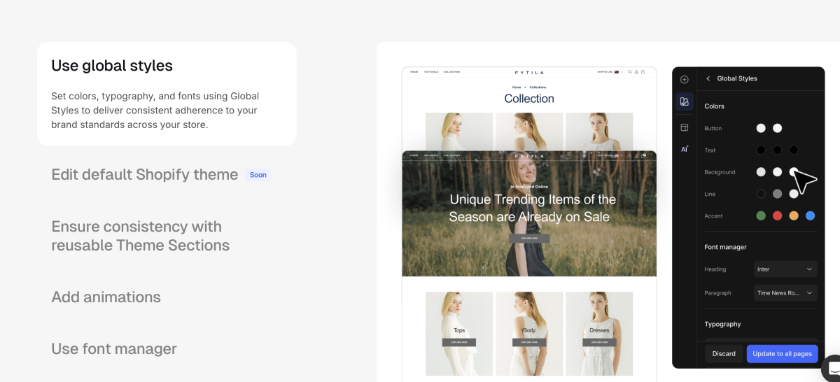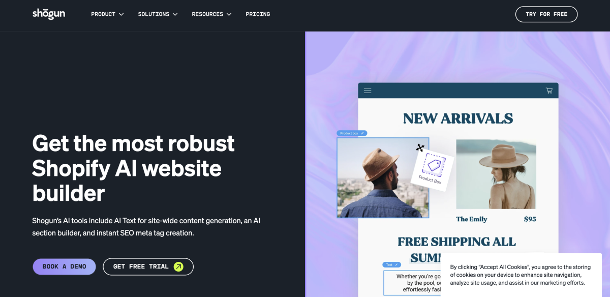 Shogun is a popular visual website builder that integrates seamlessly with Shopify. It assists users to expand on the default capabilities of their themes and create appealing and high-performing eCommerce websites without needing to write any code.