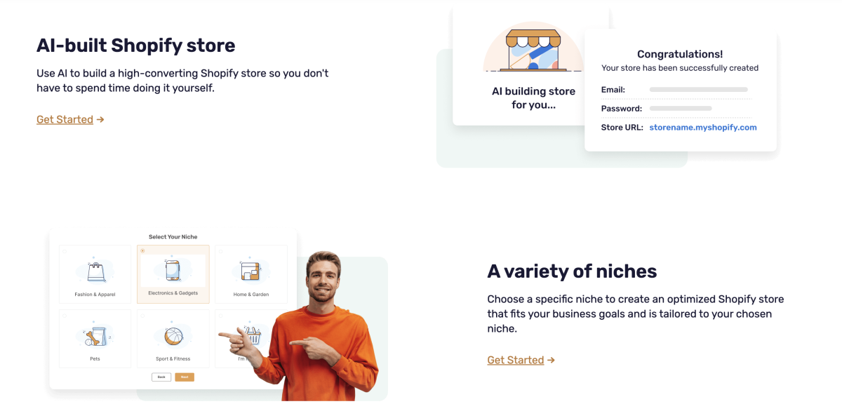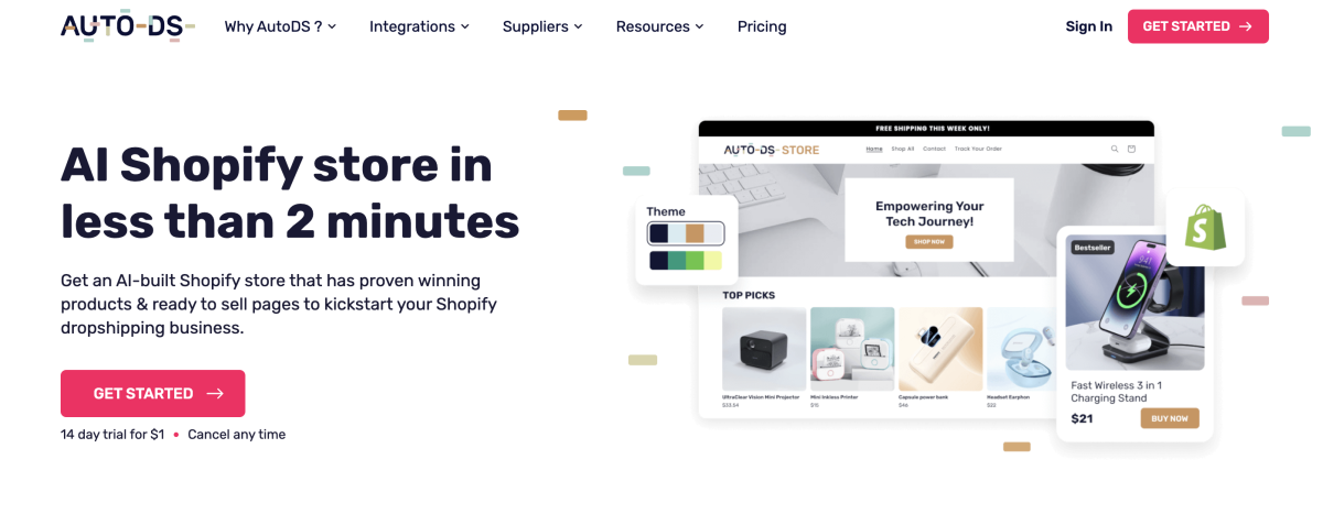AutoDS can create a fully-optimised Shopify store in under 2 minutes with their AI Store Builder, featuring preloaded winning products and ready-to-sell pages. You can choose from various profitable dropshipping niches, customise a high-converting theme, and drag-and-drop pre-designed product pages to quickly launch your business.
