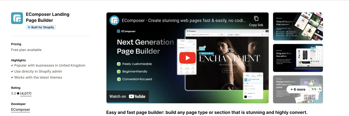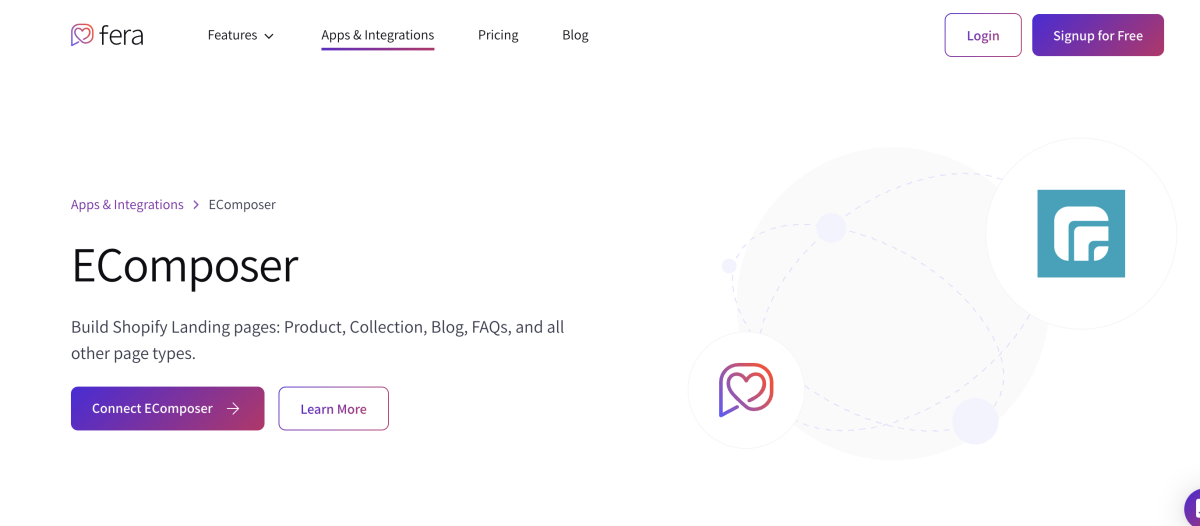 EComposer by Fera.ai is designed to enhance the visual appeal and functionality of your Shopify store. It provides tools for creating custom pages and optimising the user experience.
