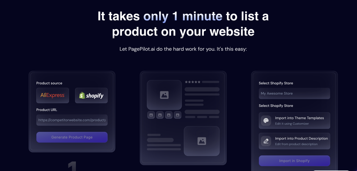 PagePilot uses AI to automatically generate detailed and persuasive product descriptions. This includes optimised pricing, descriptions, images, and reviews, tailored to attract and convert visitors. PagePilot can generate compelling ad copy for various platforms, ensuring your ads capture attention and drive engagement. PagePilot's AI tool provides daily updates on winning products, helping you discover high-demand items before they saturate the market. These products can be directly imported into your Shopify store.