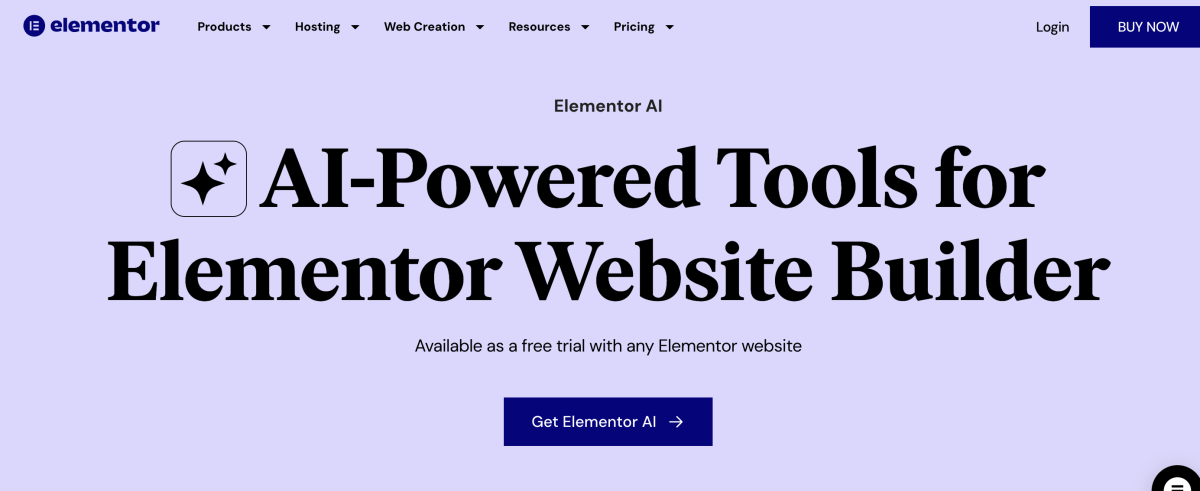 Elementor AI offers a variety of products all separately priced. The pricing below is for their website builder plugin:
