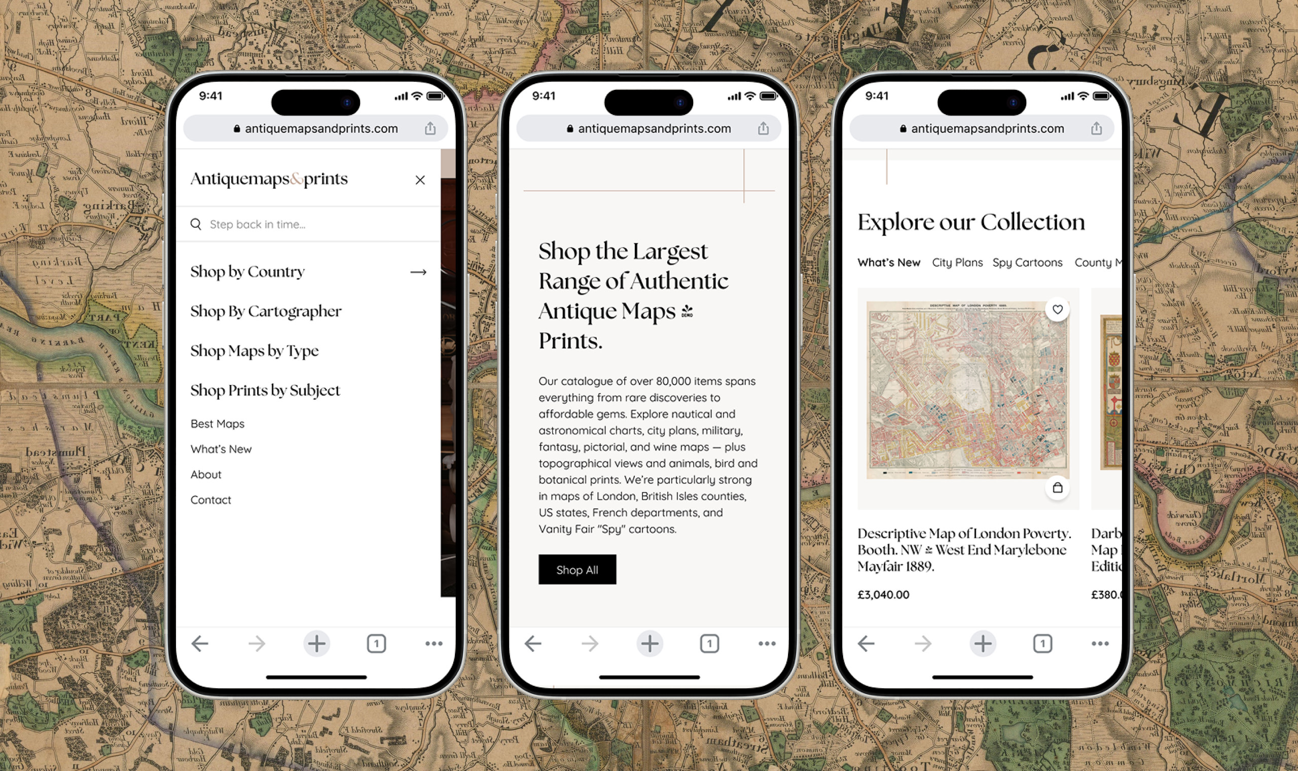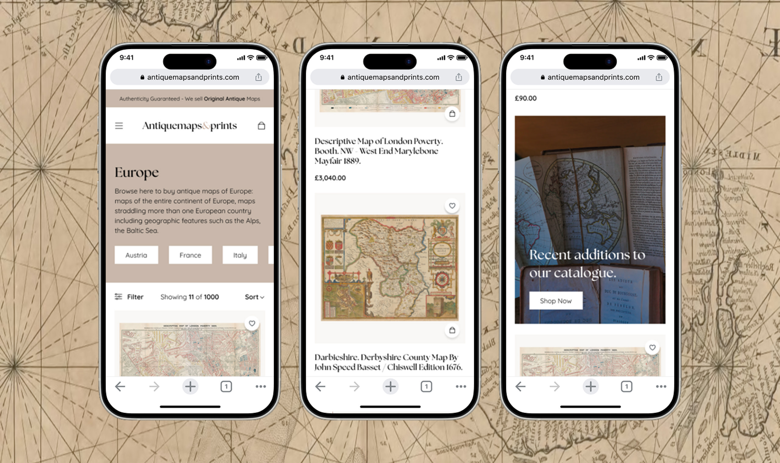 A fresh new website provided the opportunity to modernise the brand identity. With a refreshed logo and updated visual style, Antique Maps & Prints now has a more contemporary and trustworthy presence while still honouring its traditional roots.