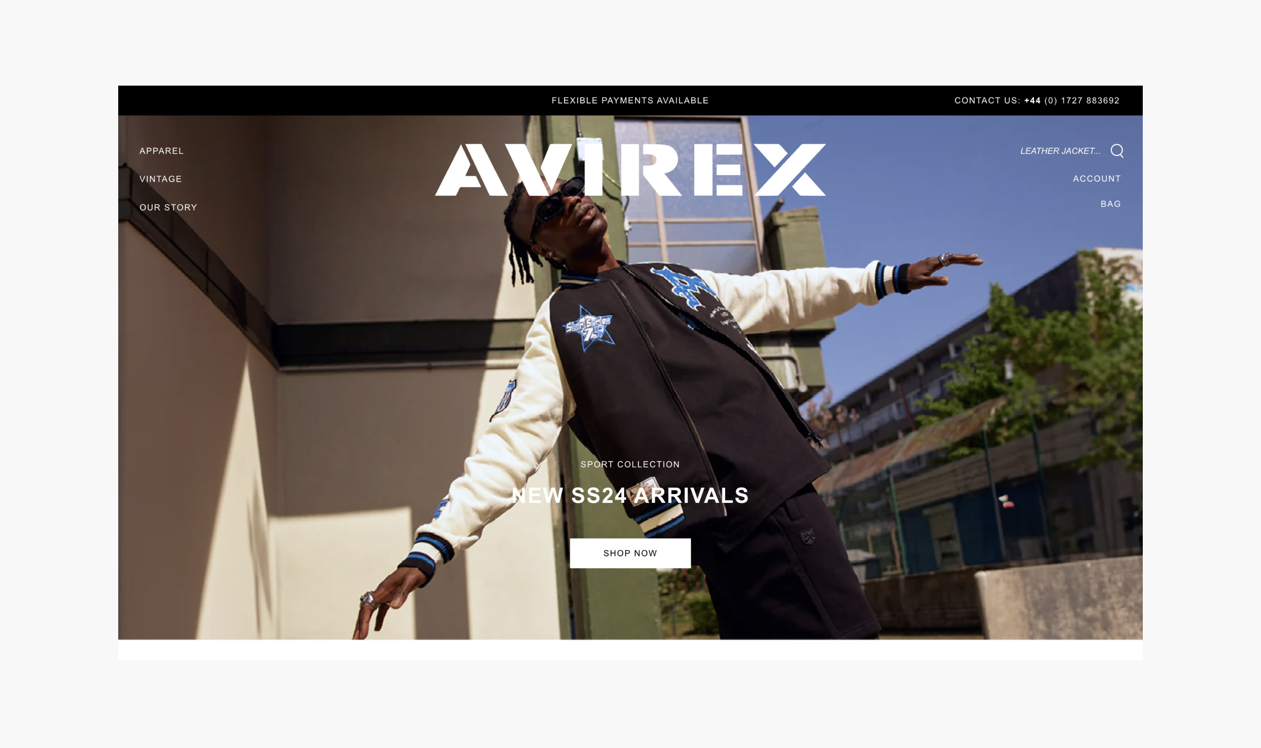 We're proud to have collaborated with Avirex on this transformative project, bridging heritage with modernity to redefine the New York brand's online presence. With a bold new custom Shopify site, Avirex continues to inspire, captivate, and define luxury streetwear trends.