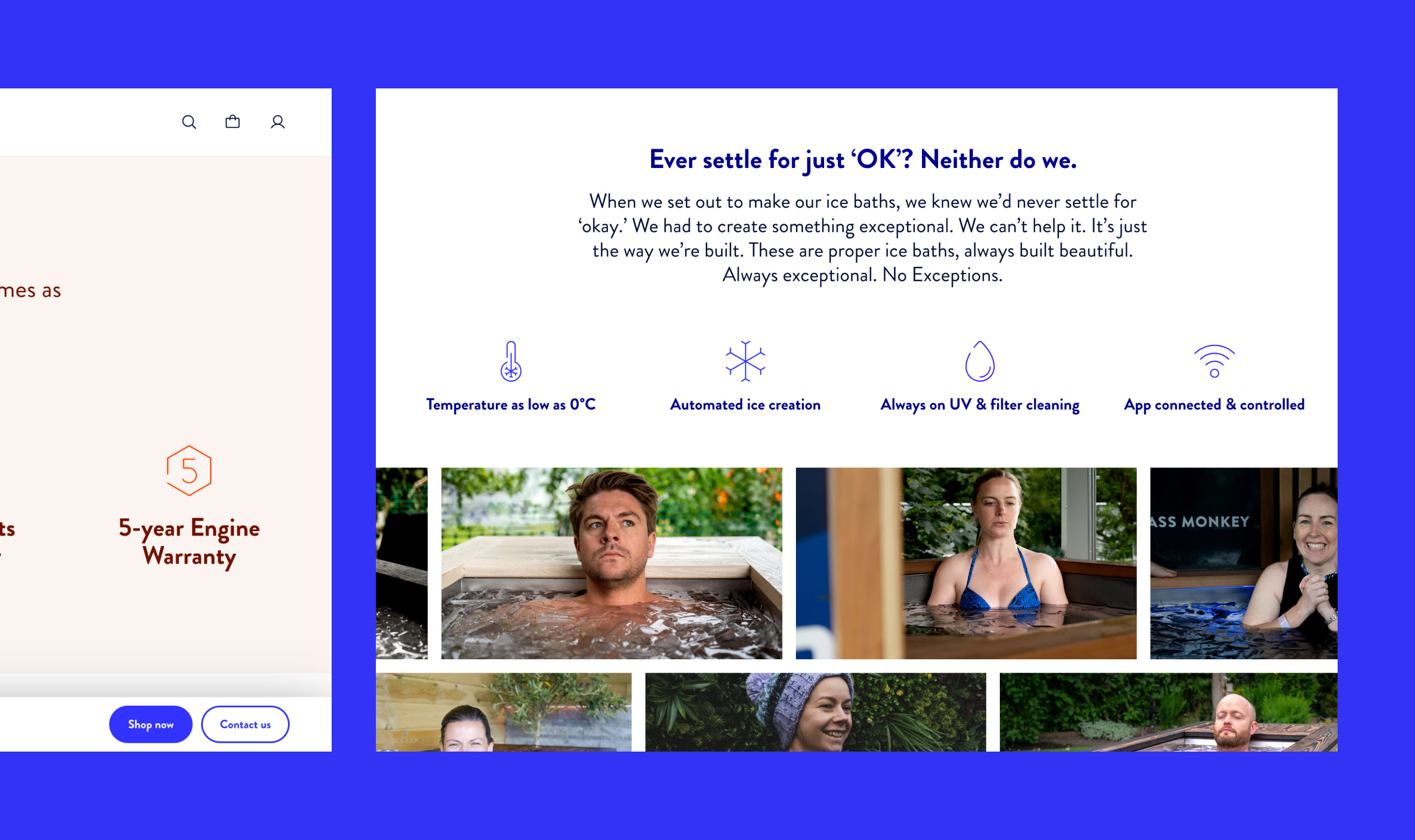 Brass Monkey isn’t a traditional D2C ecommerce brand. With premium products including the world’s finest ice baths, a commercial range and celebrity ambassadors and customers, we had to ensure the website, strategy and execution were aligned with their market goals to hit specific revenue, growth and launch targets.
