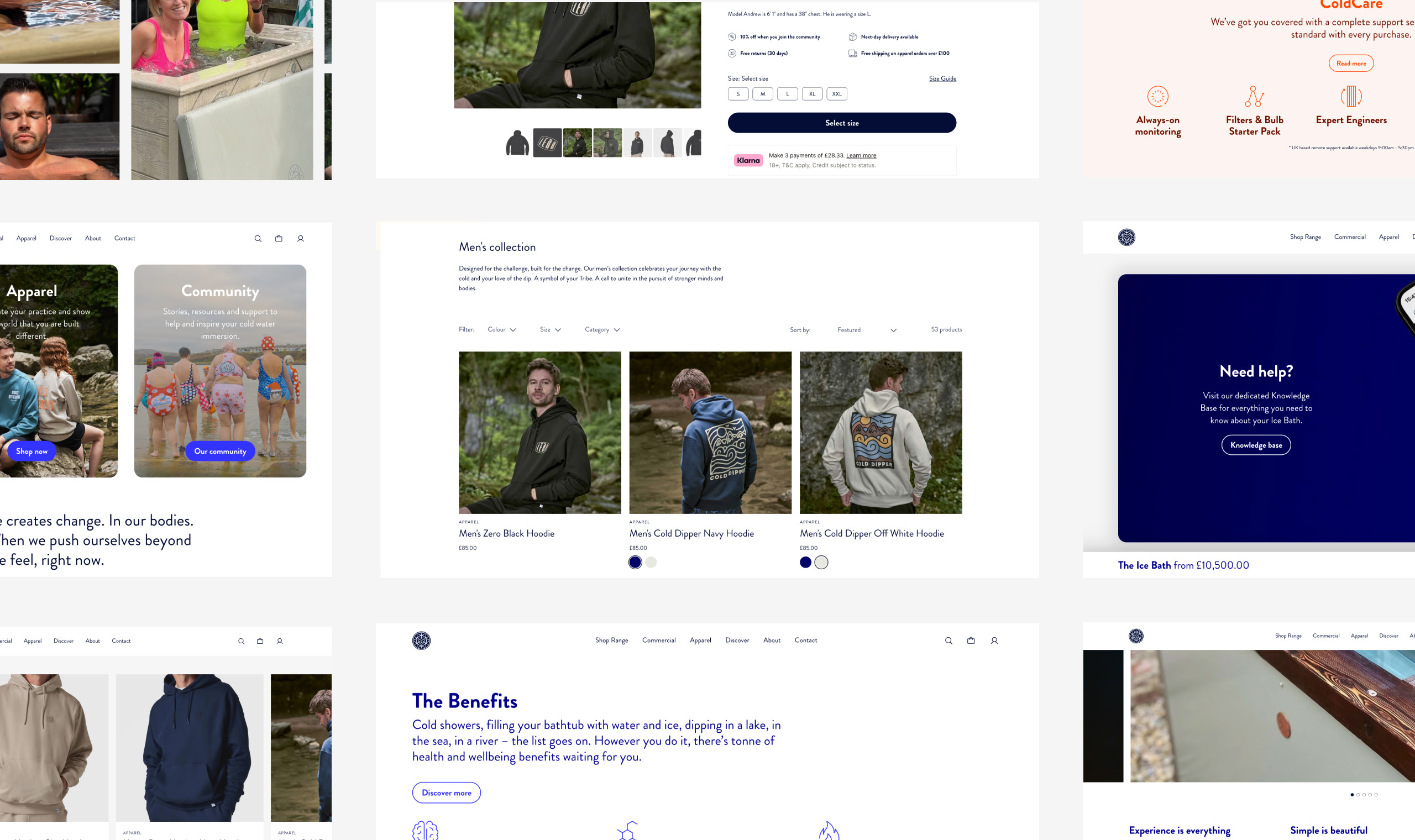 Launching a new clothing range was an exciting challenge, and we used it as an opportunity to create a brand entry point for new customers. Some of the work we executed included helping foster a sense of community using ambassador content on the website (which Brass Monkey then extended to social media). We also targeted existing ice bath owners to extend their connection with the brand through apparel. In addition, we guided the brand on how to set up products for ecom practices such as merchandising and filtering.