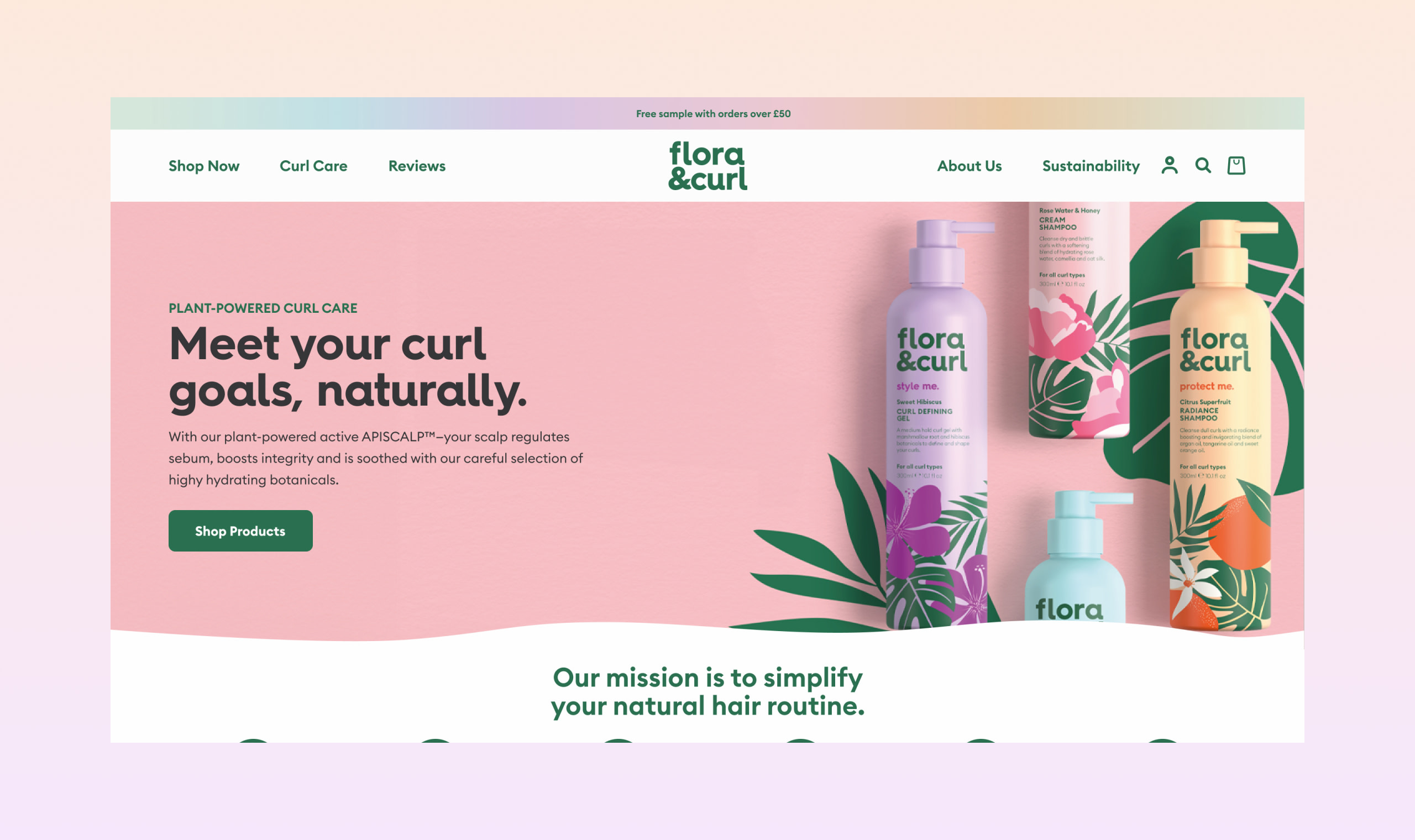 Flora & Curl had a bold vision: for a website that aligned with their rebrand and conveyed their eco-friendly ethos. We crafted a Shopify Plus store that not only beautifully showcases their recyclable aluminum bottles but also embodies their brand values of simplicity, sophistication, and sustainability.