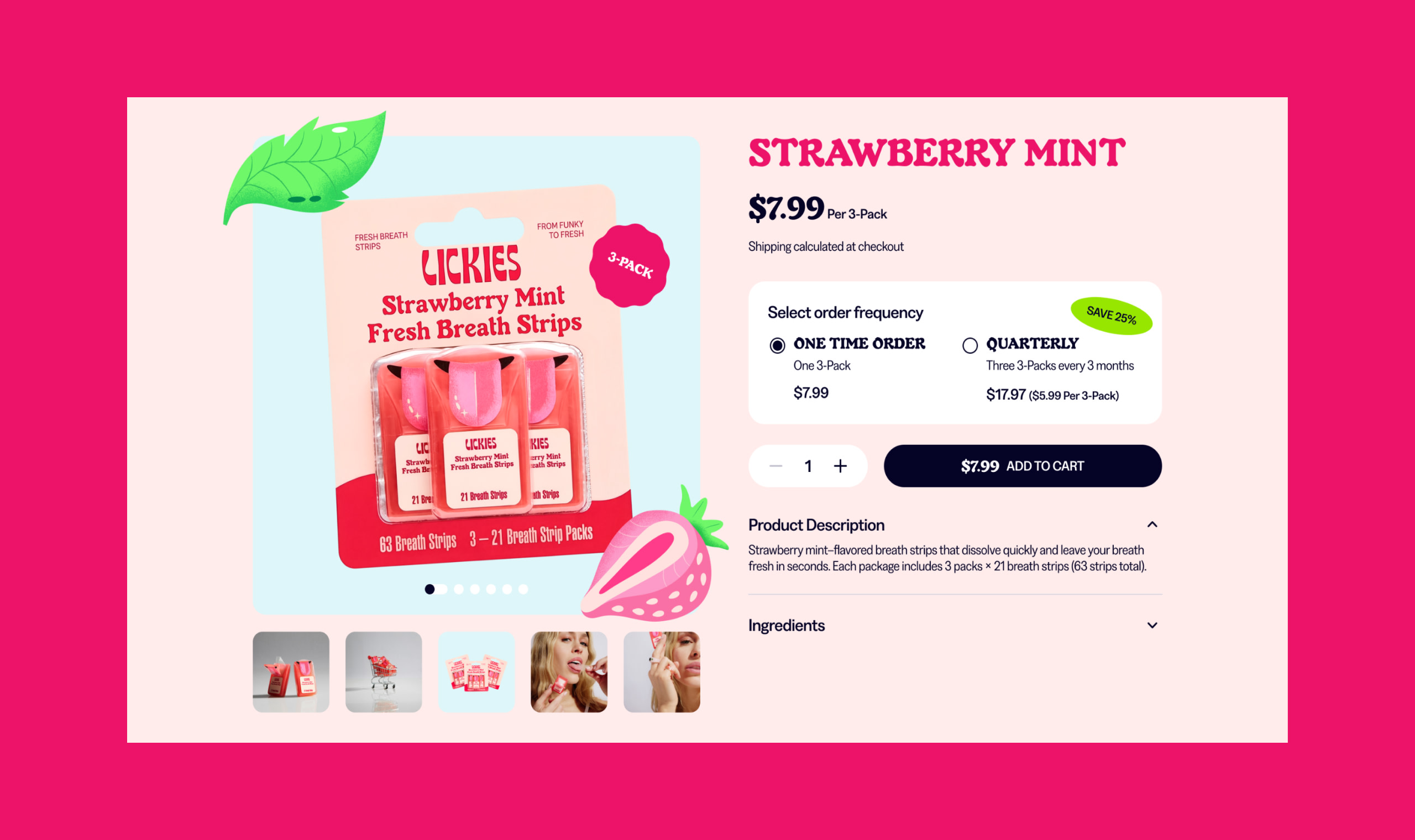 Lickies provide pocket-sized freshness via powerful strips that dissolve on your tongue in a matter of seconds, delivering pure refreshment. The brand’s website also needed refreshing, so the brand partnered with us to bring its new vision to life on Shopify.